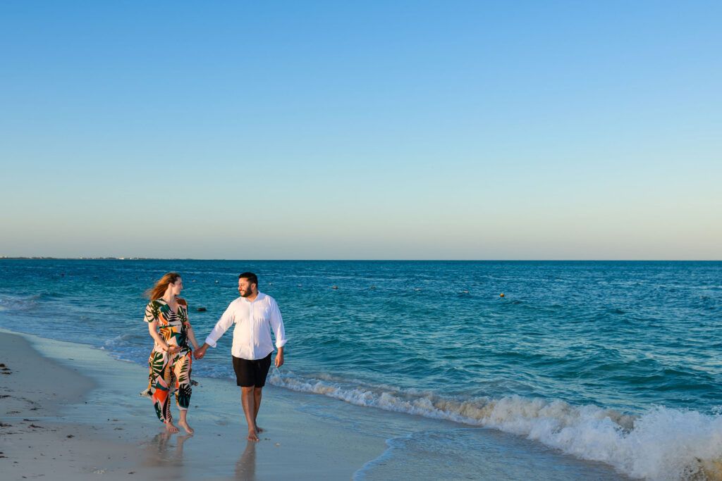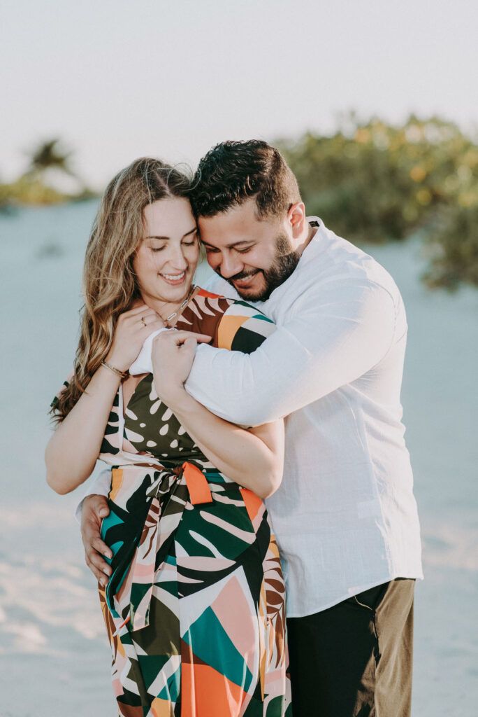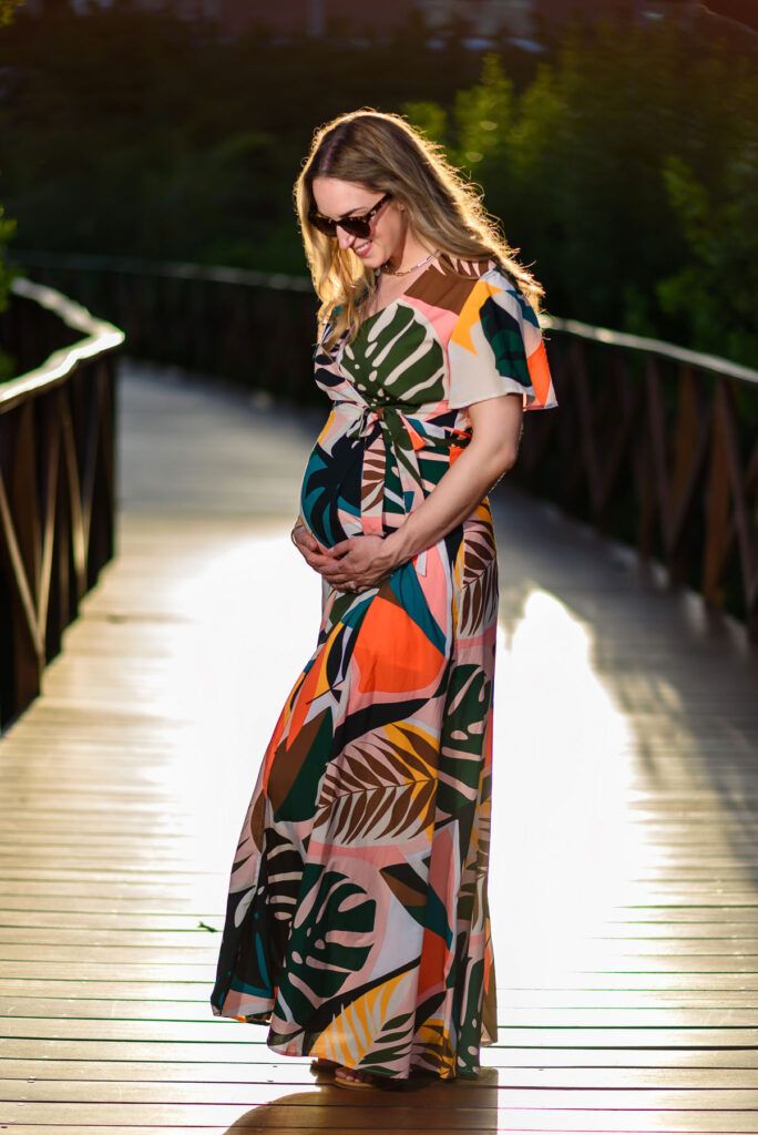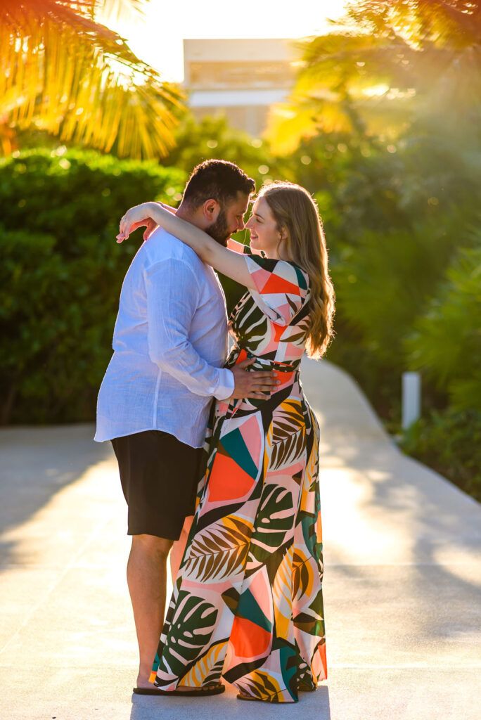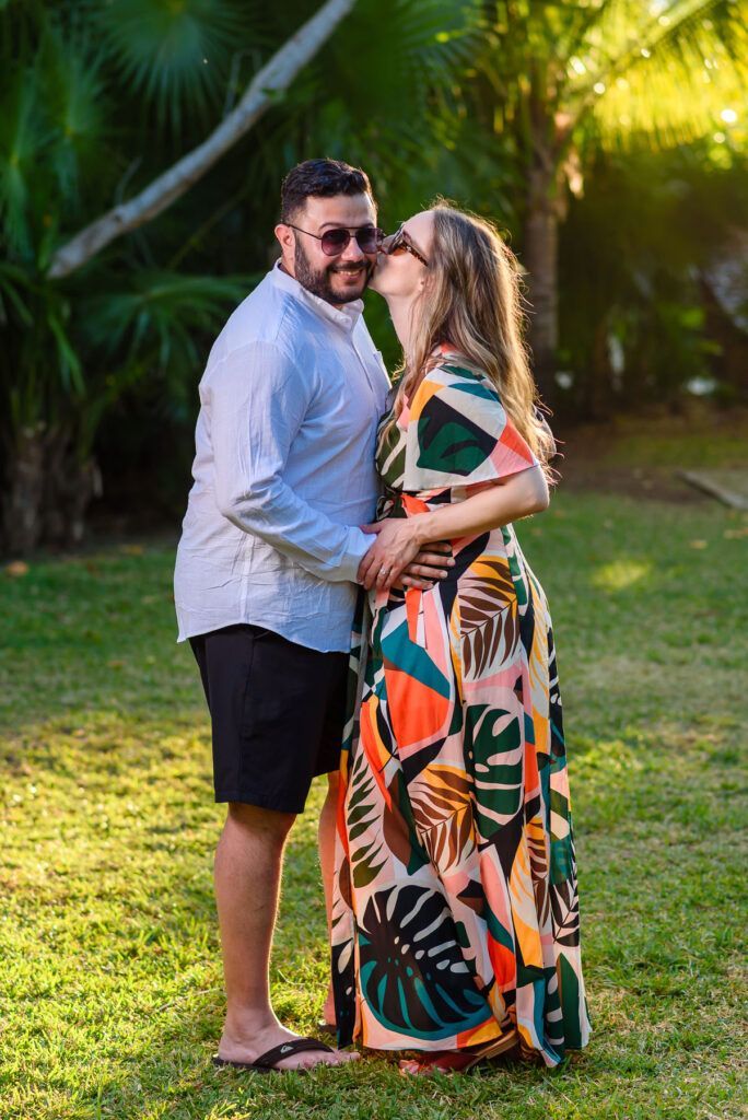 Set against the breathtaking scenery of Playa Mujeres and the Riviera Maya, this maternity session unfolded in golden Caribbean light. As the sun dipped into the horizon, warm hues of amber and blush surrounded a mother-to-be standing gracefully between modern architecture and the tranquil sea.