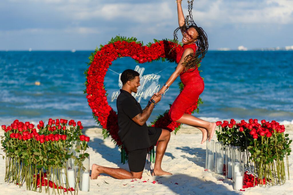 A Romantic Beach Proposal at Sunset