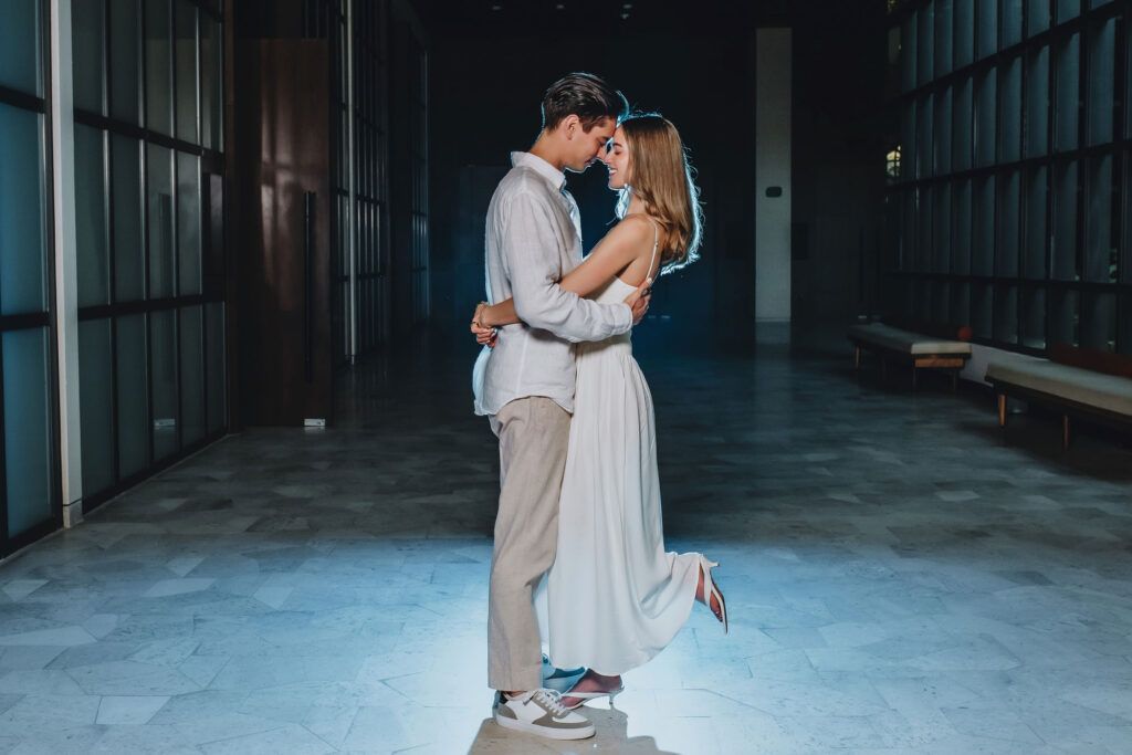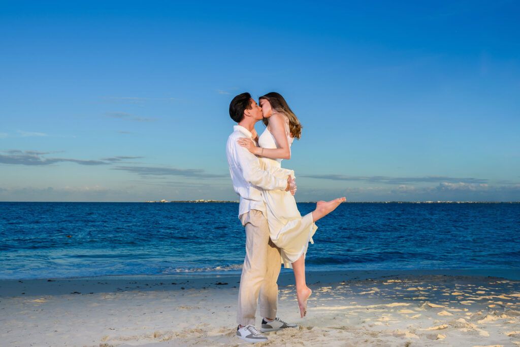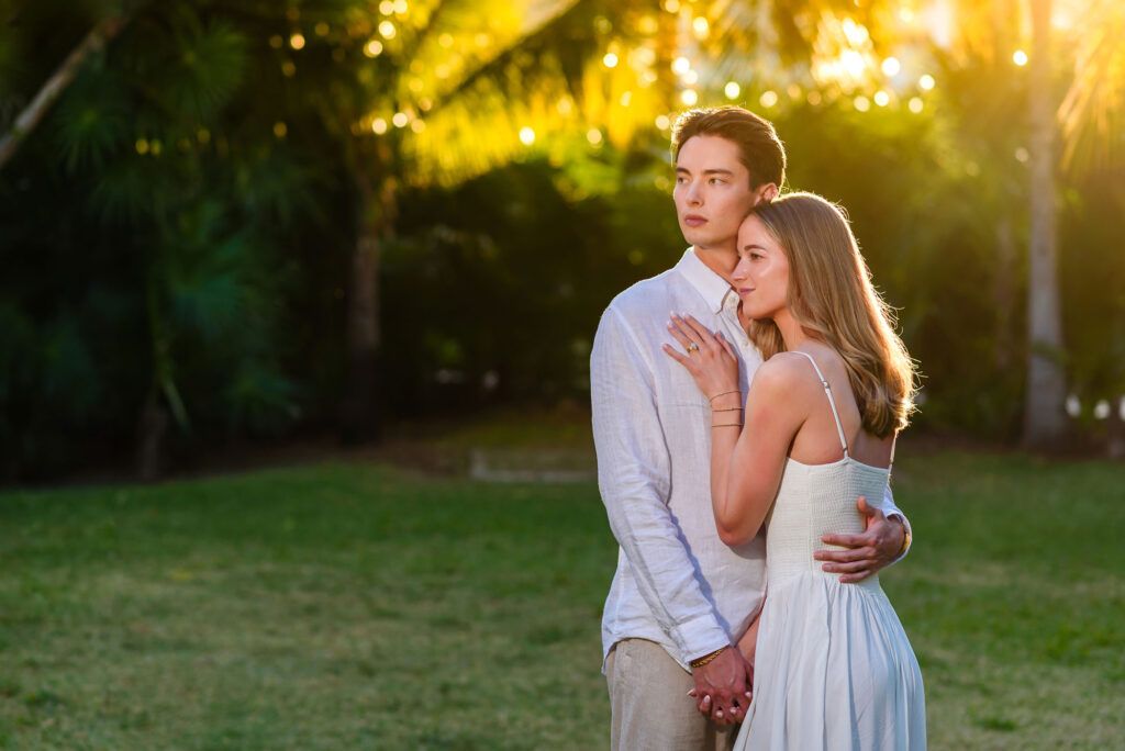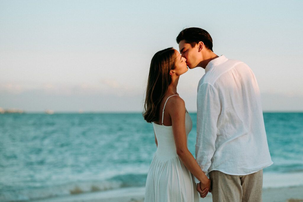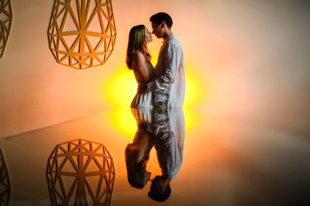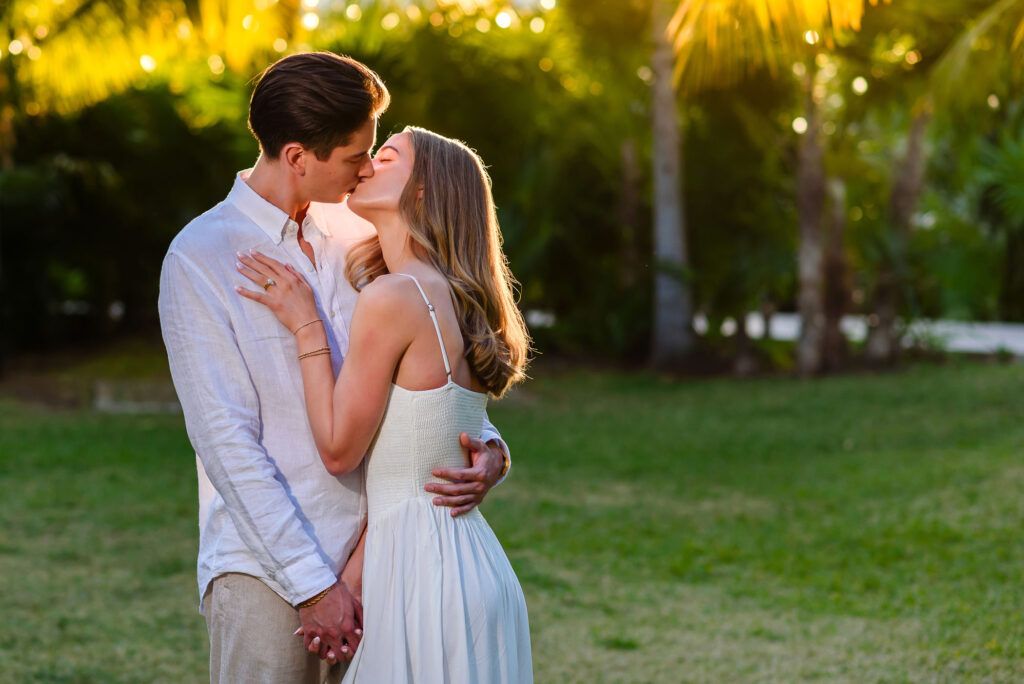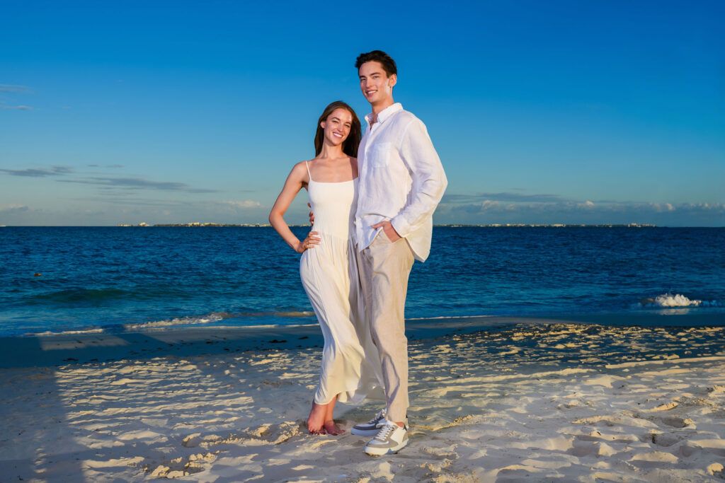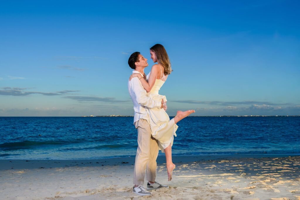 This Save The Date photography session in Cancun was designed to reflect the couple’s essence — natural, sophisticated, and deeply connected. With the Caribbean breeze as witness and golden light embracing every frame, we focused on capturing authentic moments that represent the beginning of their wedding journey.