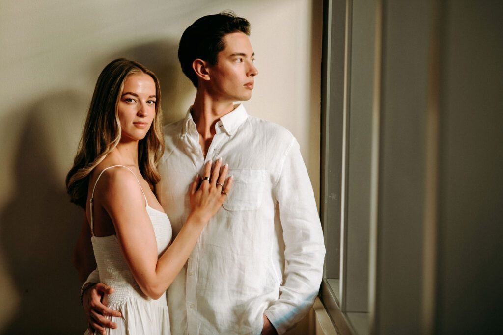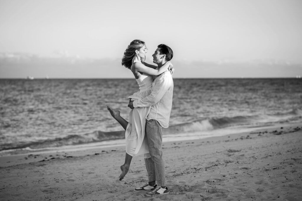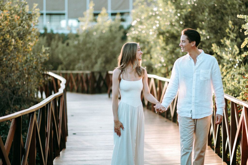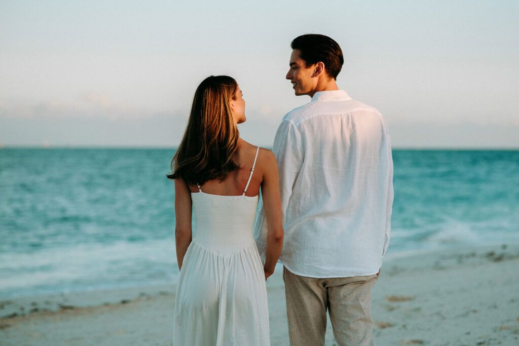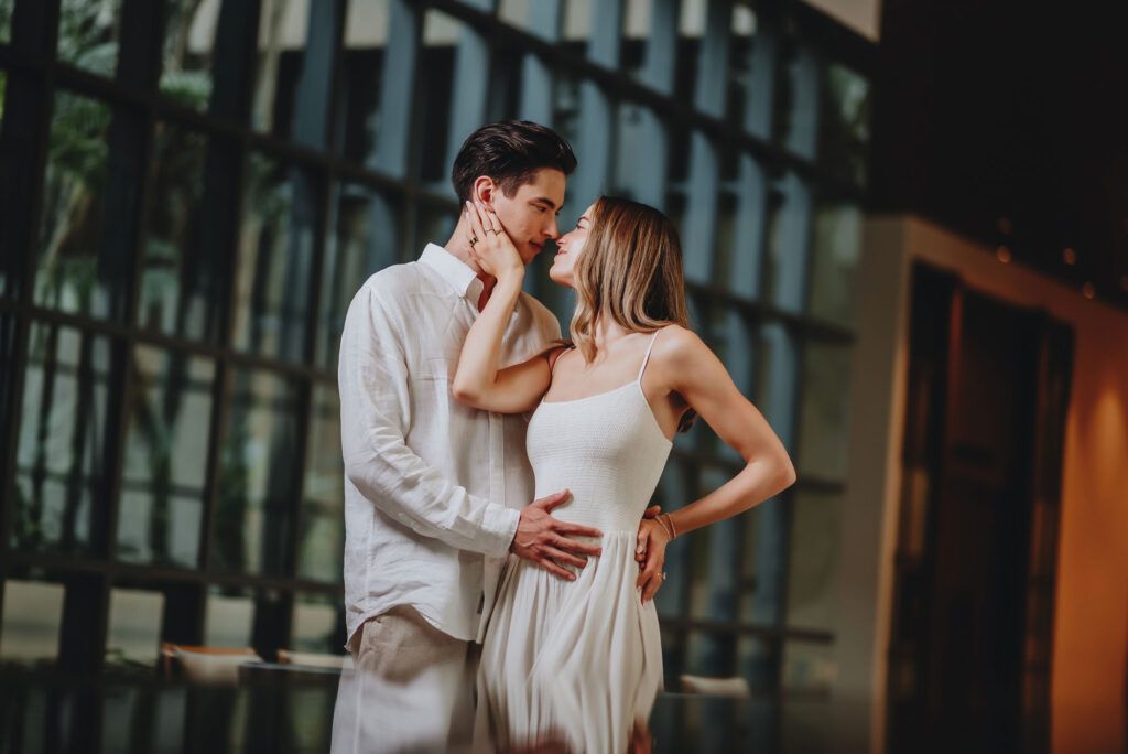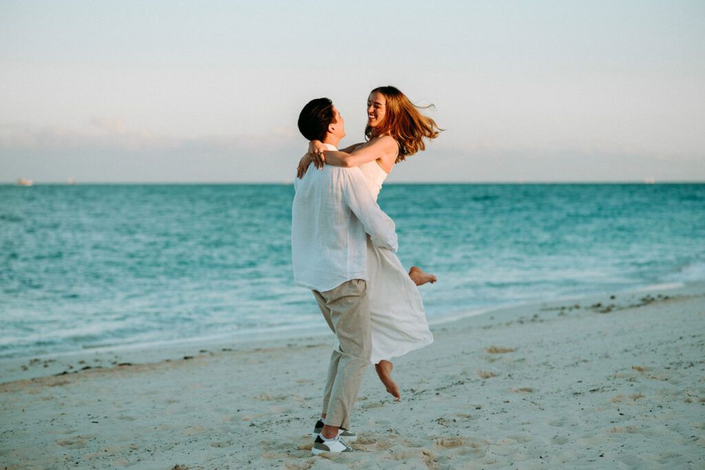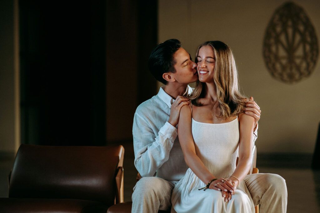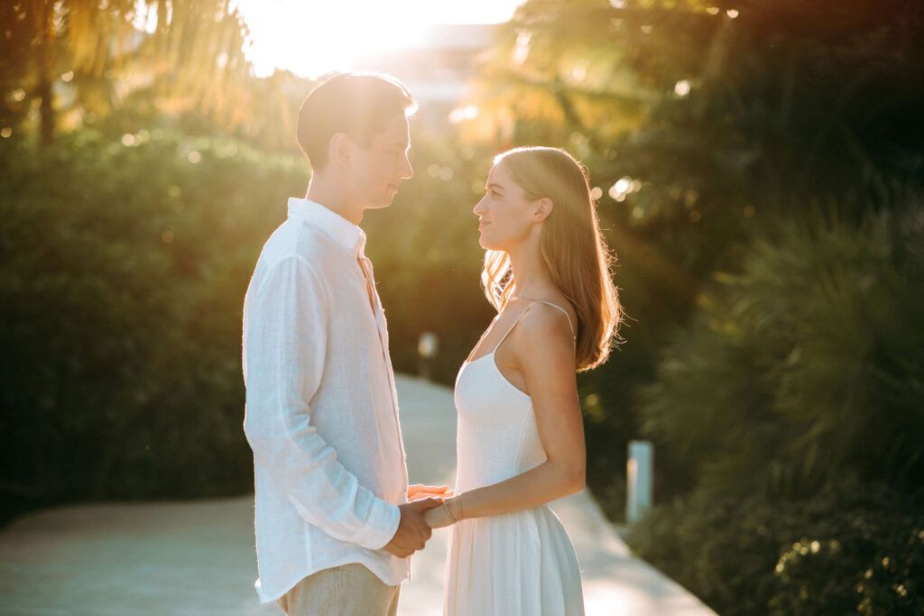 This Save The Date photography session in Cancun was designed to reflect the couple’s essence — natural, sophisticated, and deeply connected. With the Caribbean breeze as witness and golden light embracing every frame, we focused on capturing authentic moments that represent the beginning of their wedding journey.