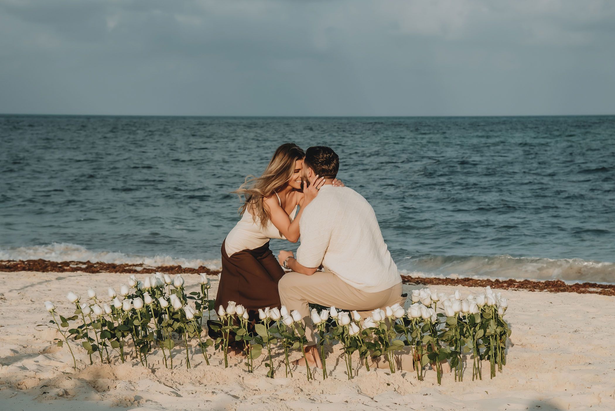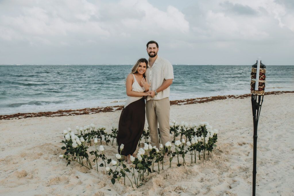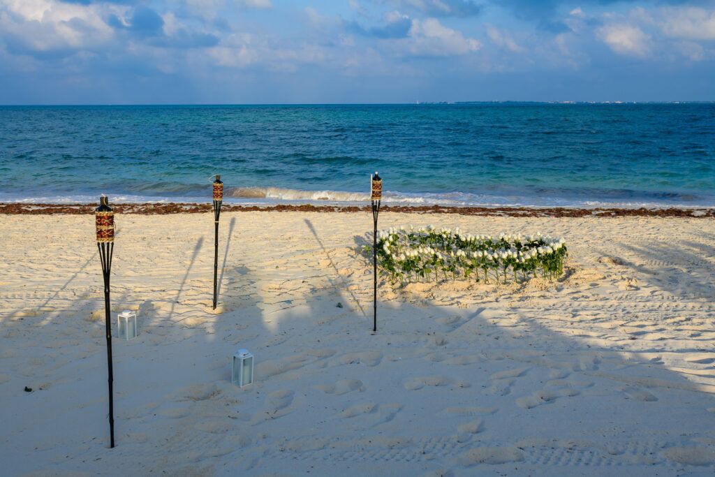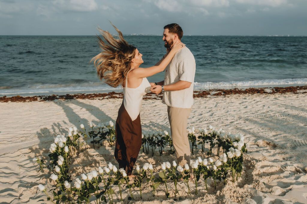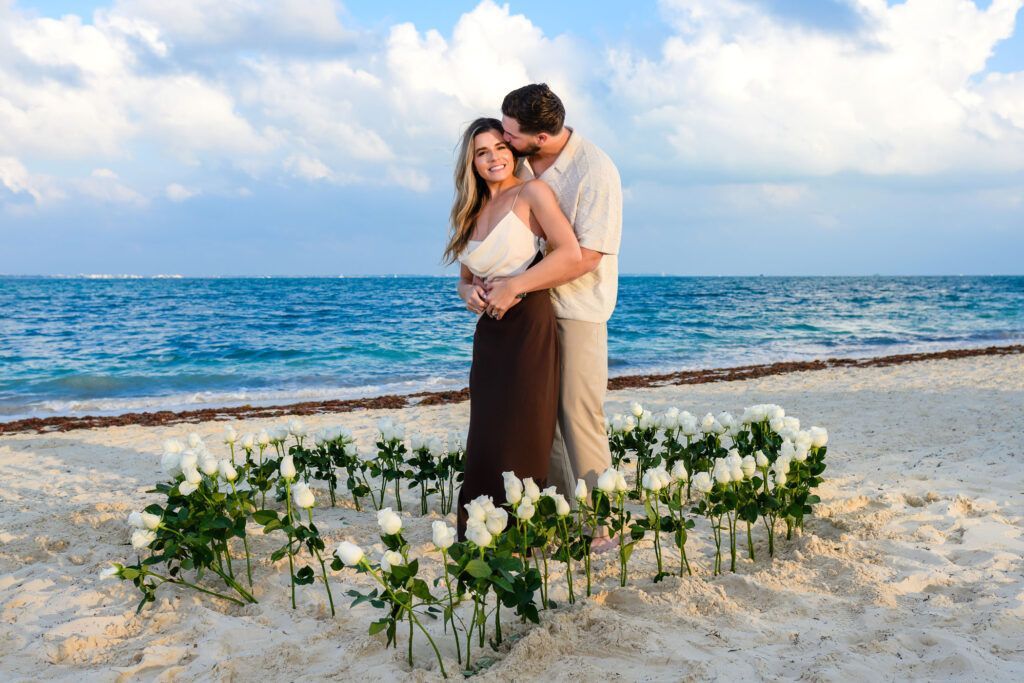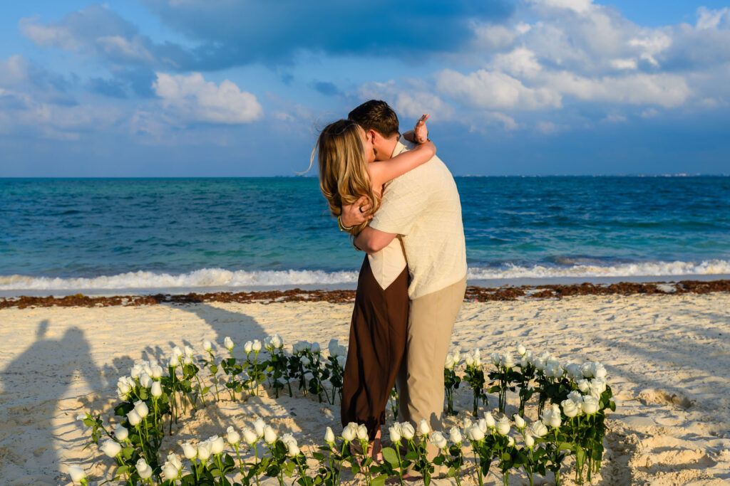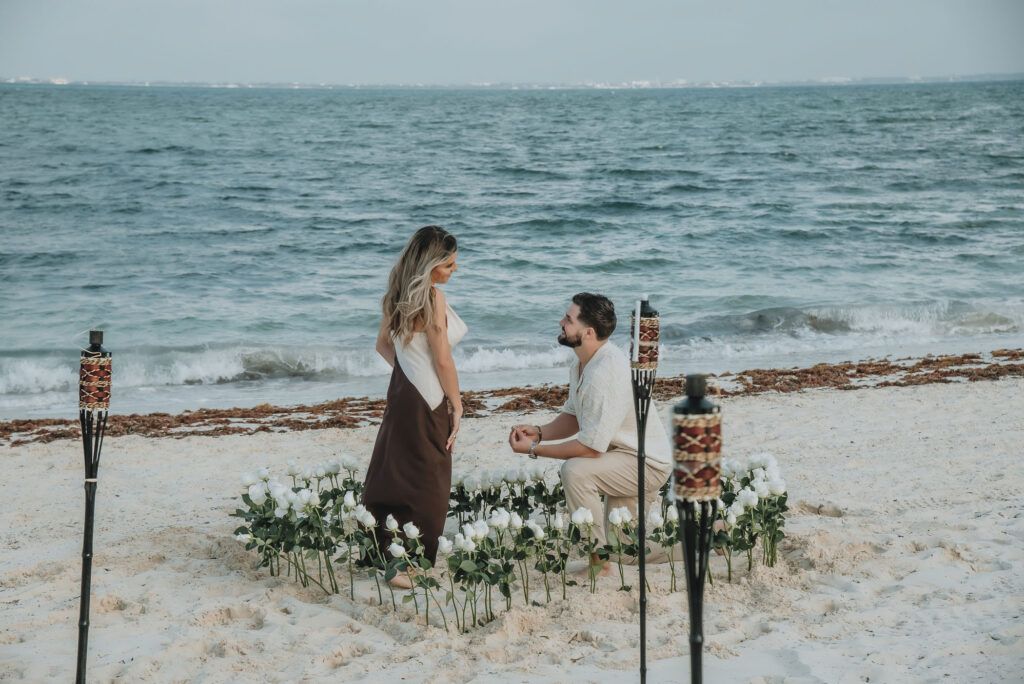 As daylight fades over the shores of Atelier Playa Mujeres in Cancun, this marriage proposal unfolded as a refined and emotional experience. The sunset painted the sky with warm tones, creating the perfect setting in the heart of the Riviera Maya for a moment meant to be remembered forever.